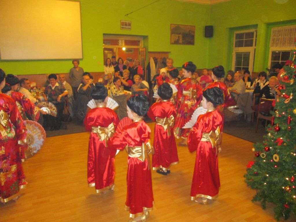 Na začátku nás přivítal pan starosta Ing. Jiří Skalický, po té nám přiblížili vánoční svátky  svým představením žáci ZŠ a MŠ Velemín, pod vedením paní vychovatelky z MŠ a paní učitelky ZŠ. Po vystopení našich žáků nám předvedly své umění malé žoretky z TK Roudnice nad Labem, které nám během zábavného odpoledne zatančily i jako gejši.