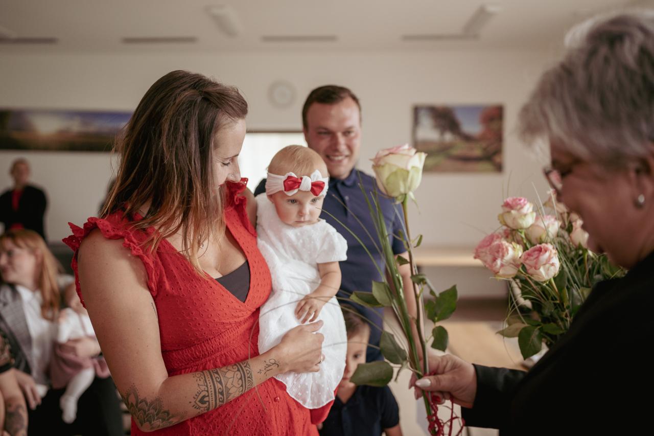 Přítomným rodičům pogratulovala Mgr. Ladislava Malíková a jménem obce Velemín popřála jim i jejich dětem pevné zdraví, štěstí a hodně radosti do života. Po podpisu do pamětní knihy si maminky odnesly kytičku a děti krásný dáreček spolu i s pamětním listem děťátka. Následně kdo měl zájem se mohl zúčastnit tradičního focení v kolébce, která byla přichystaná ve vedlejší místnosti.