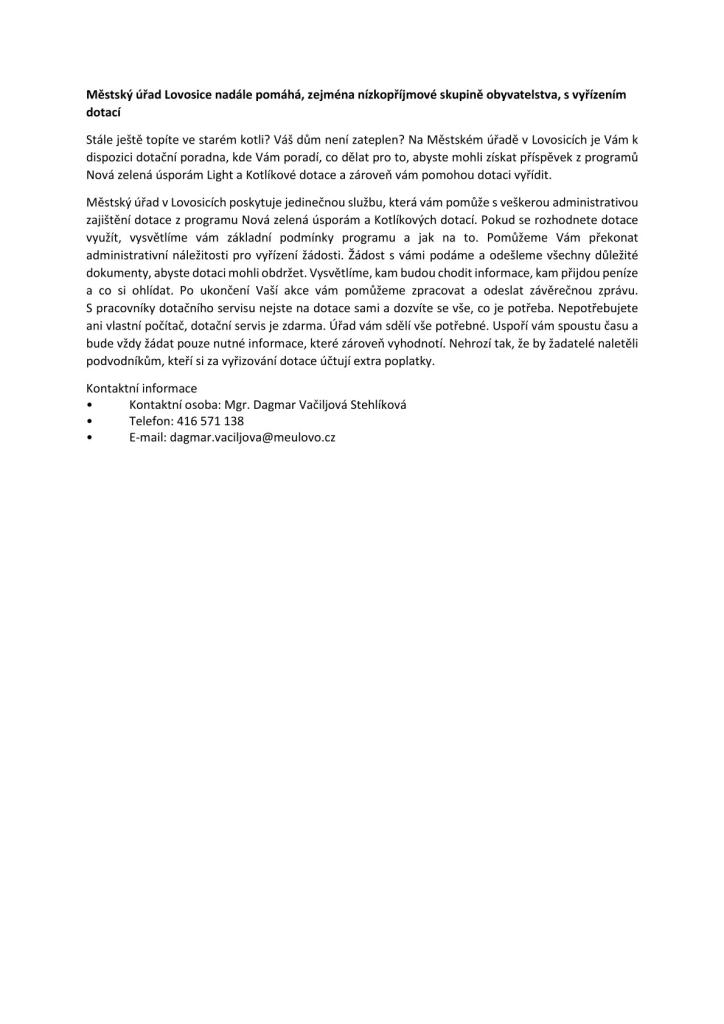 MěÚ Lovosice nadále pomáhá s čerpáním dotací spojené s výměnou "starých kotlů na uhlí" ![]()