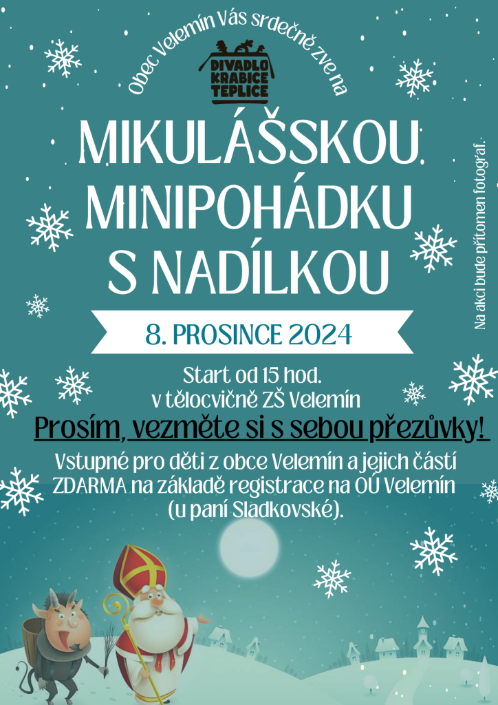 Akce byla přesunuta z původního místa v Motorestu do tělocvičny ZŠ Velemín. Pokud již máte lístky, změna místa se vás týká, vstupenky platí nadále.![]()