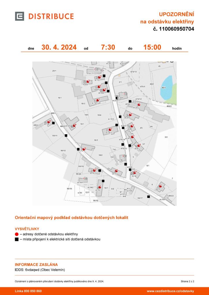 Oznámení o přerušení dodávky elektrické energie dne 30.4.2024 od 7:30 do 15:00 hod. Boreč -č.p. 2,3,6,9,10,11,12,14,15,22,24,25,30,31,32,34,36,44,46