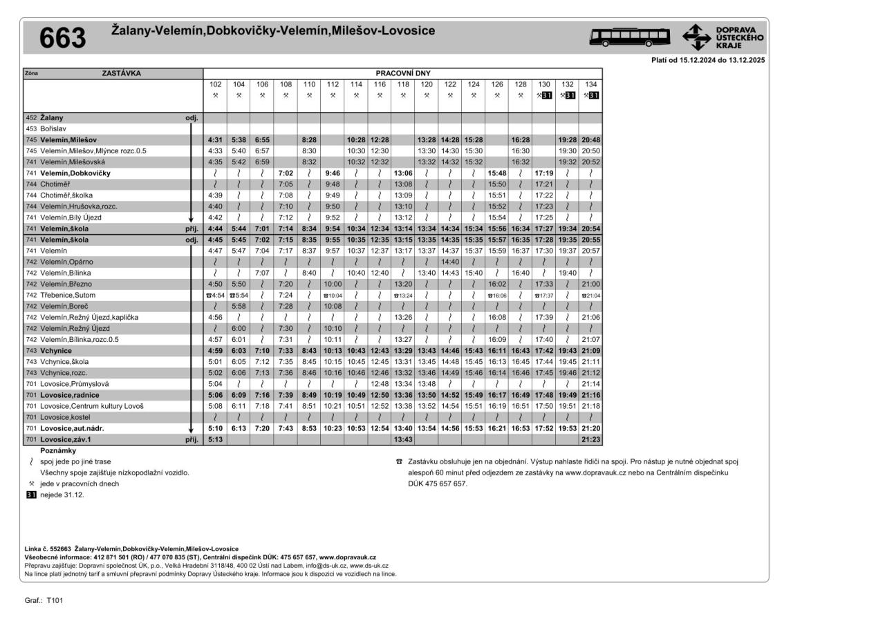 Rádi bychom vás informovali, že od 15. prosince 2024 dojde ze strany dopravce ke změně jízdního řádu autobusové linky 663. Podrobnosti naleznete v přiloženém jízdním řádu.
